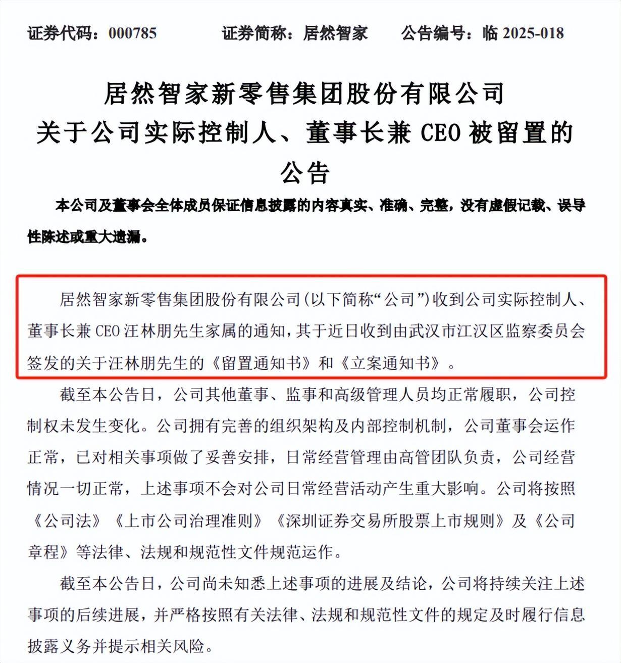 4月17日晚,居然智家公告称,实际控制人、董事长兼CEO汪林朋被留置、立案,公司尚未知悉该事项的进展及结论,将持续关注进展2023年线上实盘配资,及时履行信披义务并提示相关风险。