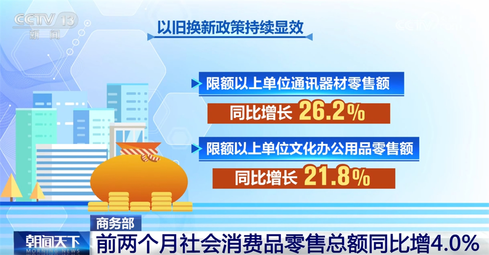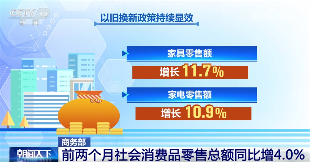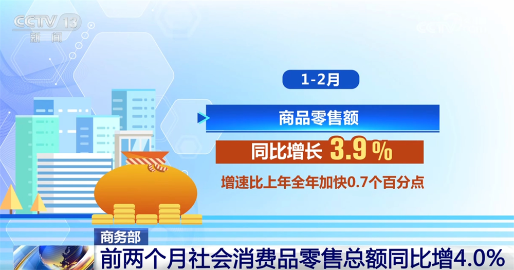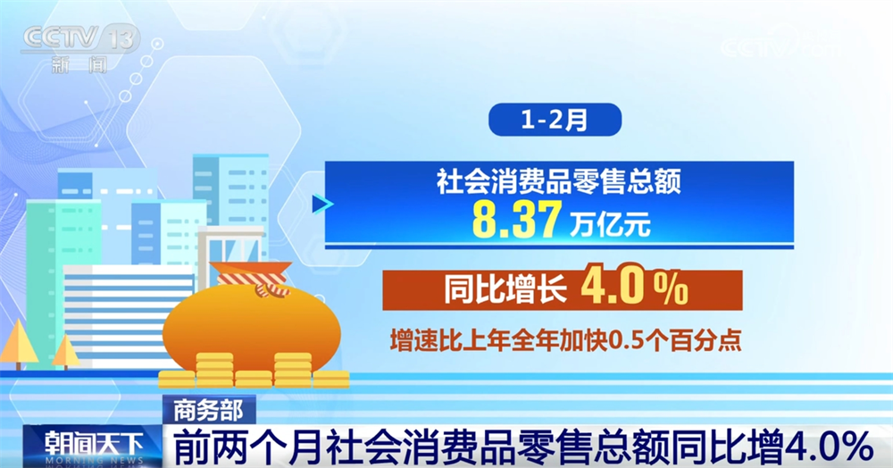 1—2月,社会消费品零售总额8.37万亿元,同比增长4.0%,增速比上年全年加快0.5个百分点。其中,商品消费平稳增长。1—2月,商品零售额同比增长3.9%,增速比上年全年加快0.7个百分点。以旧换新政策持续显效,限额以上单位通讯器材、文化办公用品零售额同比分别增长26.2%和21.8%,家具、家电分别增长11.7%和10.9%。